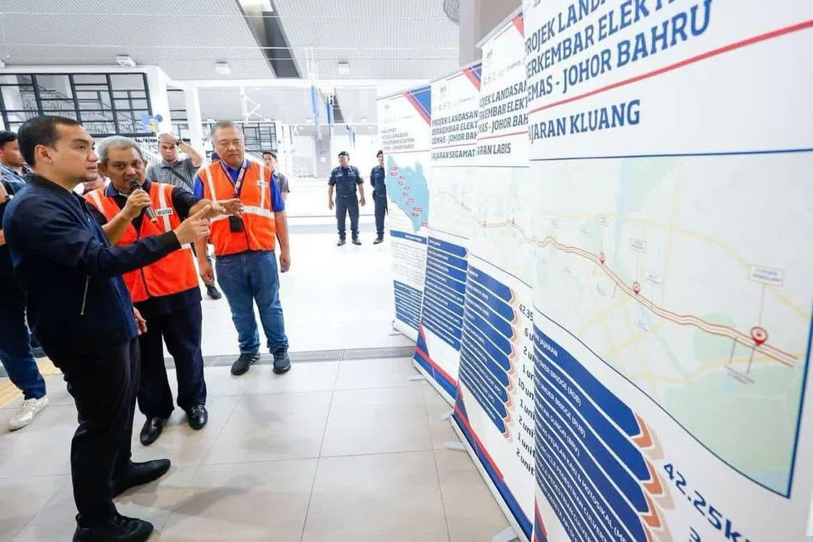 Datuk Onn Hafiz berkata Perkhidmatan Kereta Api Elektrik (ETS) Gemas-Johor Bahru telah bermula di Segamat pada 15 Mac lalu, manakala stesen di Labis akan bermula pada April diikuti Kluang pada Mei hingga ke Johor Bahru pada September 2025.