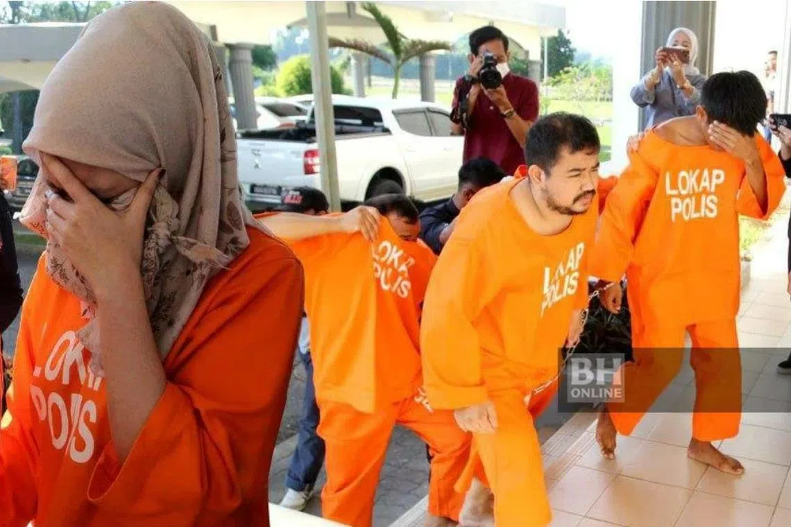 Tertuduh, Nur Ayu Fatihah Zaudi, 34 tahun, dan suami, Mohd Faizal Ismail, 35 tahun, serta tiga individu lain, Mohd Khairu Azani Mohd Lawi, 39 tahun, Mohamad Farid Ismail, 33 tahun, dan Mohamad Asmawi Janudin, 25 tahun.