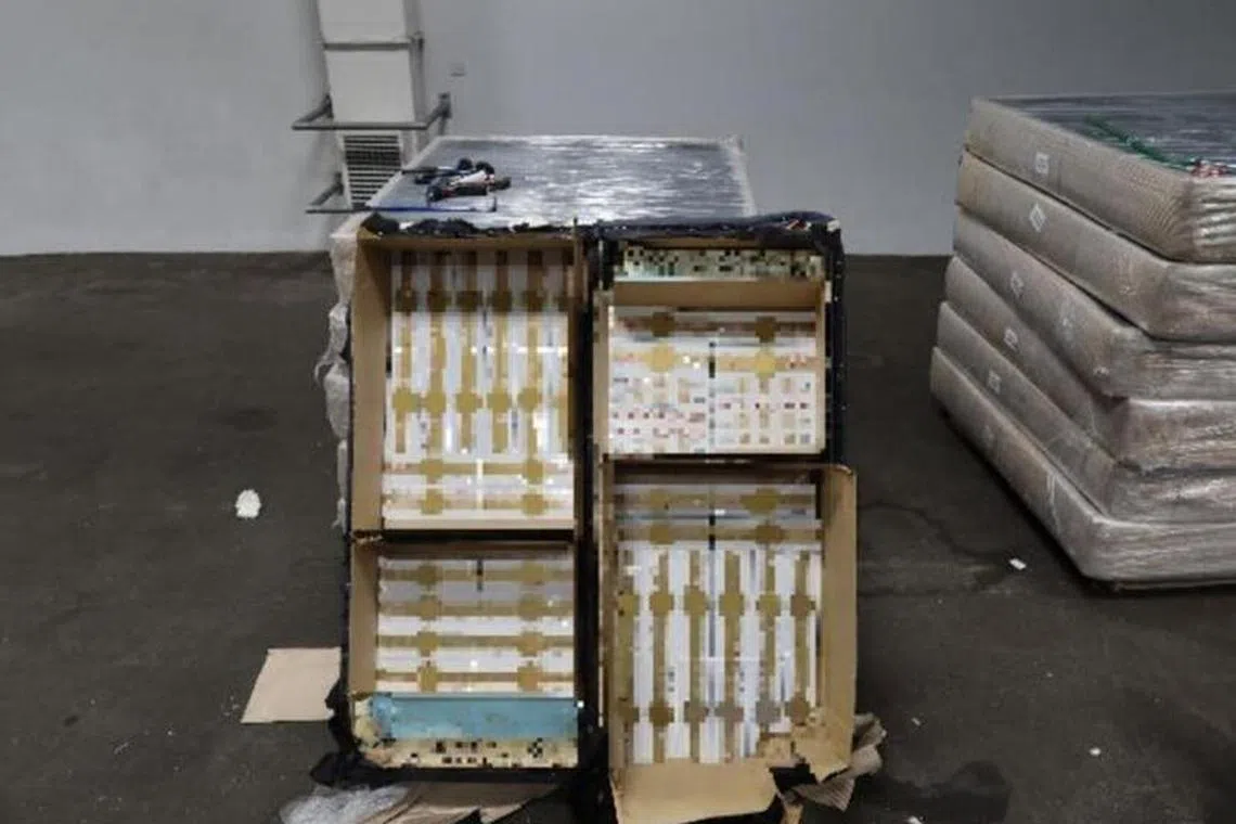 Pegawai kastam telah menemui 2,040 karton rokok tidak dibayar cukai yang dibungkus dalam kotak coklat serta 3,004 karton rokok tidak dibayar cukai disembunyikan di dalam katil sofa.