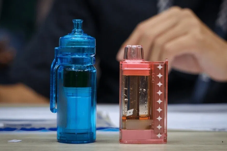 Empat pod vape dan komponen berkaitan yang disyaki mengandungi etomidate dirampas dari kediamannya.