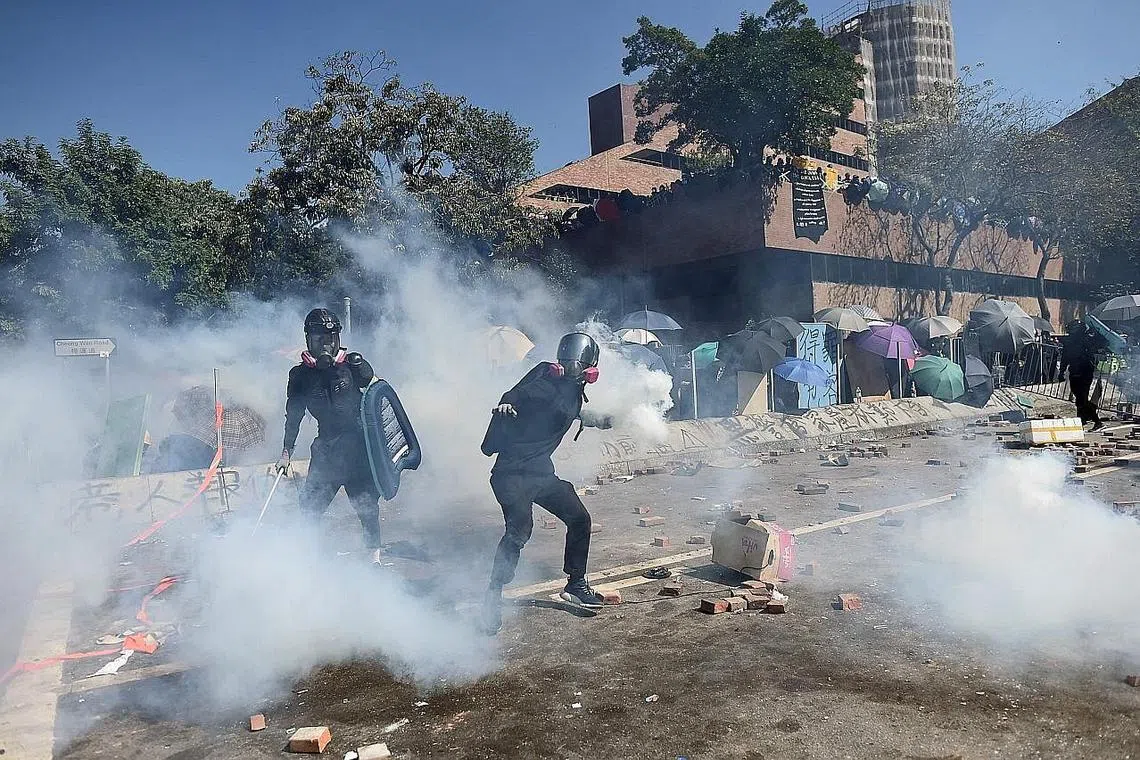 SIFAR TOLERANSI: Menteri Ehwal Dalam Negeri, Encik K. Shanmugam, berkata Singapura akan mengamalkan toleransi sifar terhadap kegiatan bantahan dan tunjuk perasaan yang dijalankan tanpa izin pihak berkuasa. Jaga keamanan awam merupakan antara pengajaran yang diraih daripada pengalaman tunjuk perasaan ganas di Hong Kong. - Foto AFP -
