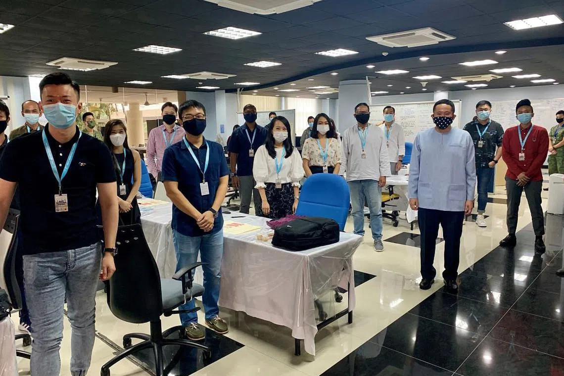 SETIAUSAHA Parlimen Kanan (Ehwal Dalam Negeri merangkap Kesihatan), Encik Amrin Amin, mengunjungi Pusat Jejak Kontak SAF di Kem Mandai Hill pagi tadi.