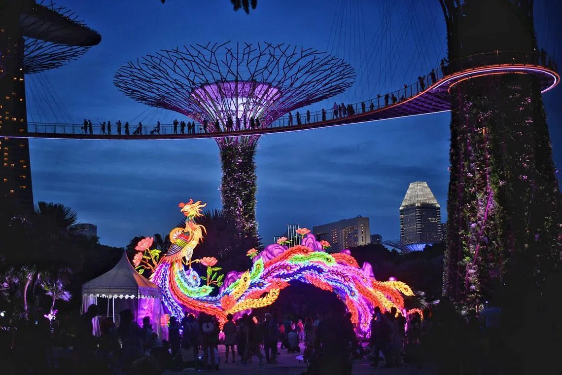 ANTARA TARIKAN UTAMA: Pameran Phoenix dan Peony yang terletak di kawasan Supertree Grove itu merupakan simbol tradisional Cina yang melambangkan kemuliaan, keharmoniaan, dan kemewahan. - Foto BH oleh ARIFFIN JAMAR -