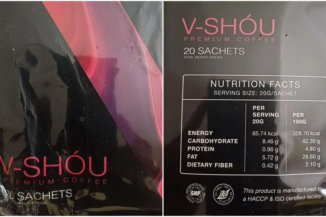 Produk kopi itu, V-SHOU Premium Coffee, yang dijual di pelbagai wadah e-dagang tempatan, antara lain mendakwa dapat membantu menurunkan berat badan dengan lebih cepat, mempercepat pembakaran lemak, melegakan sistem penghadaman, dan mengawal selera makan, menurut SFA.
