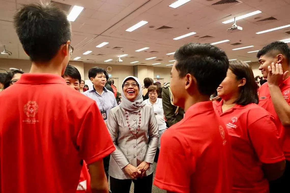 Memuat naik beberapa gambar di laman Facebook beliau, Puan Halimah memberi ucapan selamat kepada kontinjen Team Singapore itu.
