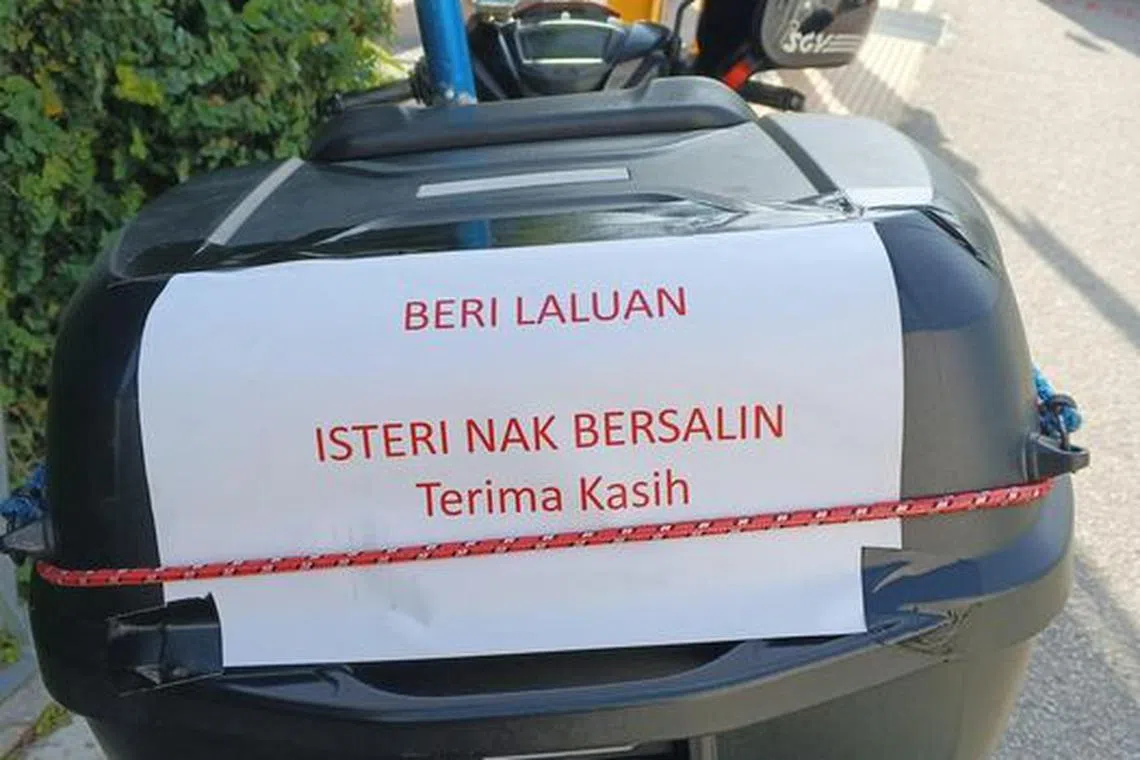 Namun, di tengah-tengah ‘lautan’ penunggang motosikal yang menyeberang Tambak baru-baru ini, satu motosikal menarik perhatian dengan nota yang ditampalkan di bahagian belakang. Nota itu berbunyi: ‘Beri laluan, Isteri nak bersalin’.