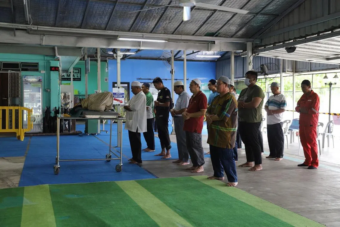 Solat jenazah dilakukan di ruang legar dan tidak di ruang utama masjid.