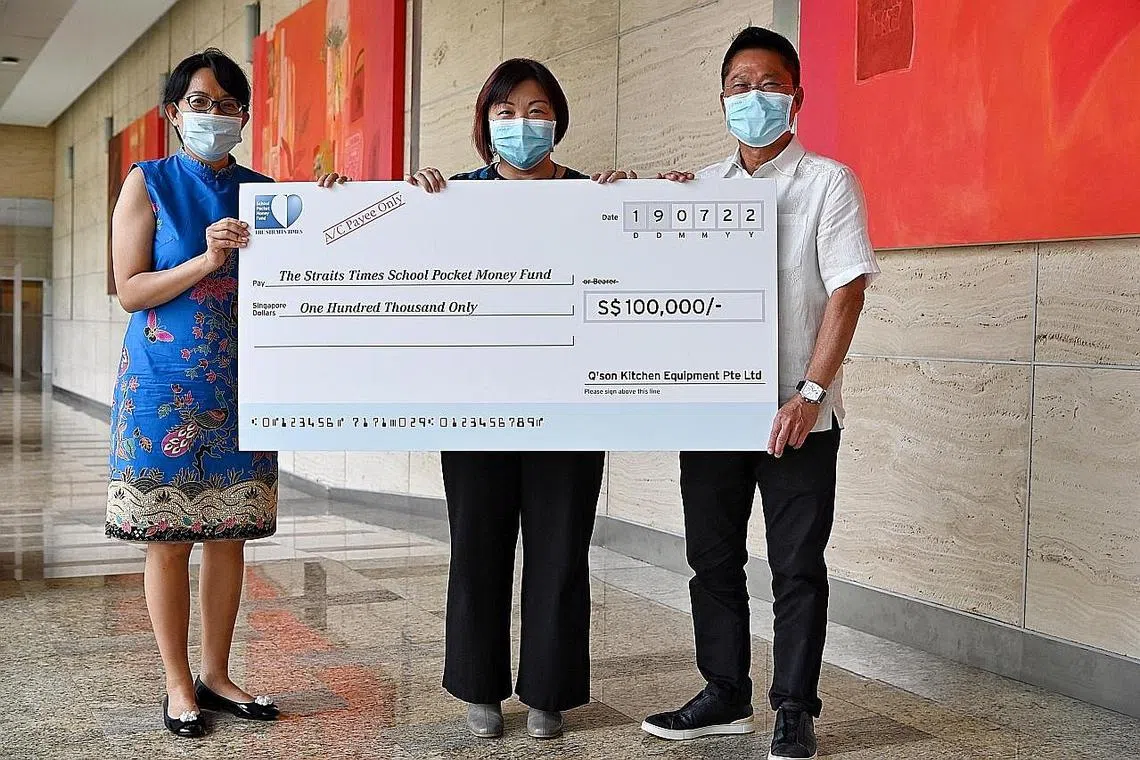 DANA Wang Saku Sekolah The Straits Times (STSPMF) menerima sumbangan $100,000 daripada syarikat tempatan, Q'son Kitchen Equipment, semalam.
