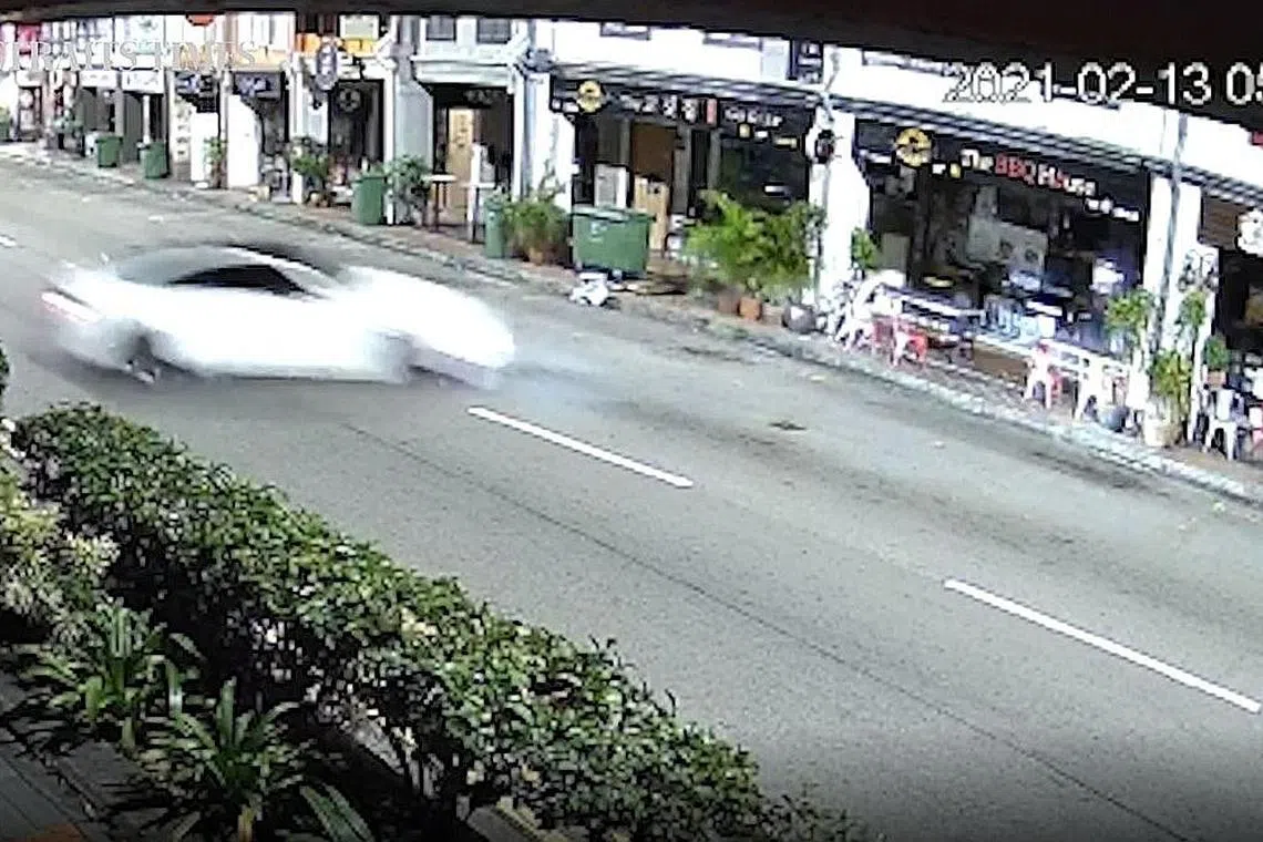 Dalam rakaman tersebut yang diperolehi The Straits Times, kereta putih BMW M4 coupe itu dilihat tergelincir selama dua saat sekitar 5.40 pagi pada Sabtu lalu, hari kedua perayaan Tahun Baru Cina.