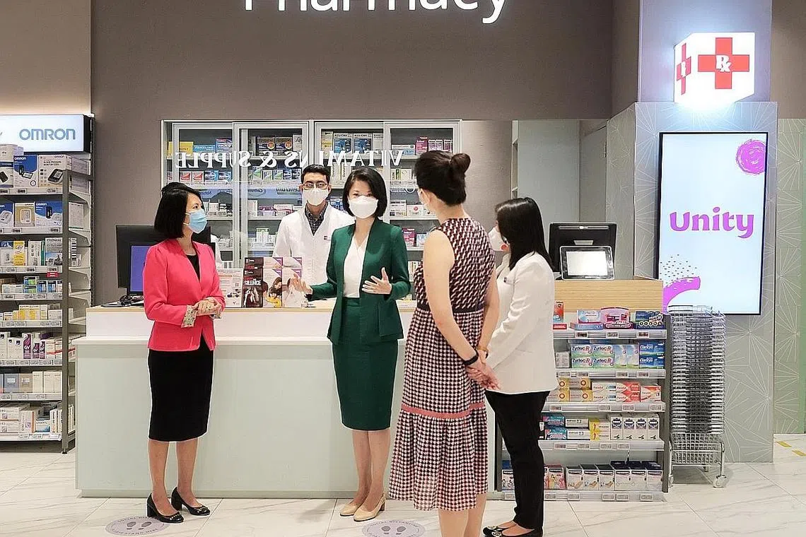 Beliau melawat farmasi Unity di VivoCity semalam dan berinteraksi dengan ahli farmasi yang telah menjalani latihan pengesanan tanda awal keganasan keluarga.