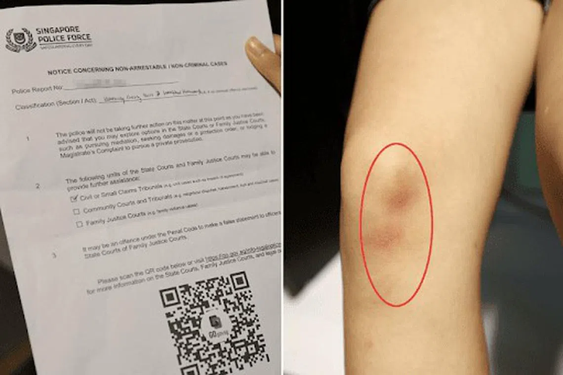 Gadis itu memberitahu ST bahawa dia mengalami hidung berdarah, bibir bengkak dan kaki lebam.