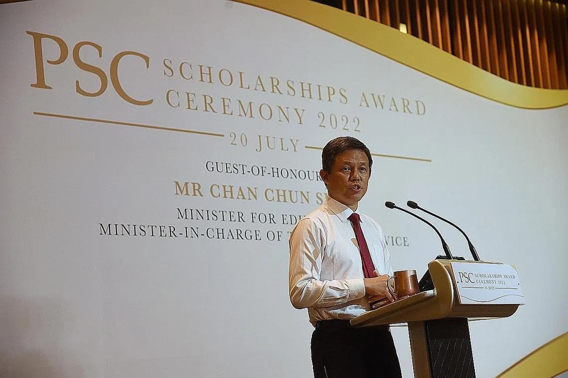 Ini diumumkan oleh Menteri Pendidikan merangkap Menteri Bertanggungjawab bagi Perkhidmatan Awam, Encik Chan Chun Sing, dalam ucapannya di majlis anugerah Biasiswa PSC di Hotel Parkroyal di Beach Road semalam.