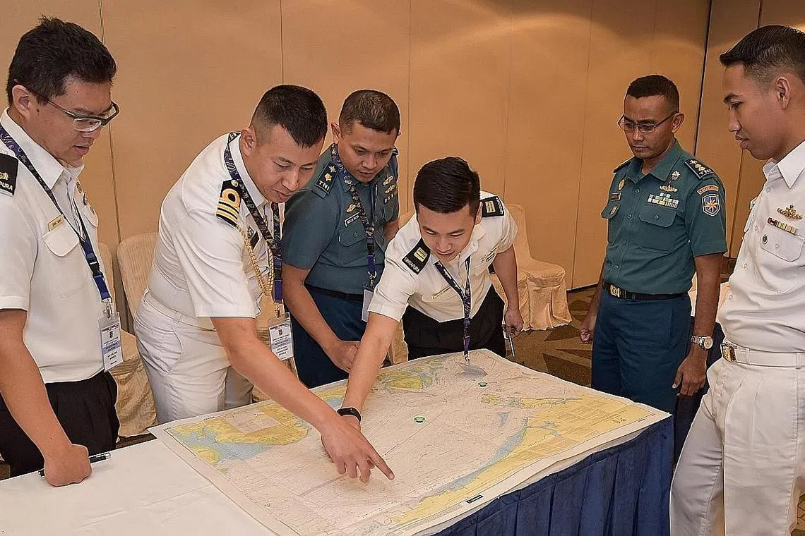 BANTERAS KEGIATAN LANUN: Pegawai daripada angkatan tentera laut Indonesia, Malaysia, Singapura dan Thailand di Mesyuarat Jawatankuasa Penyelarasan Bersama Rondaan Selat Melaka Ke-14 semalam. - Foto MINDEF -