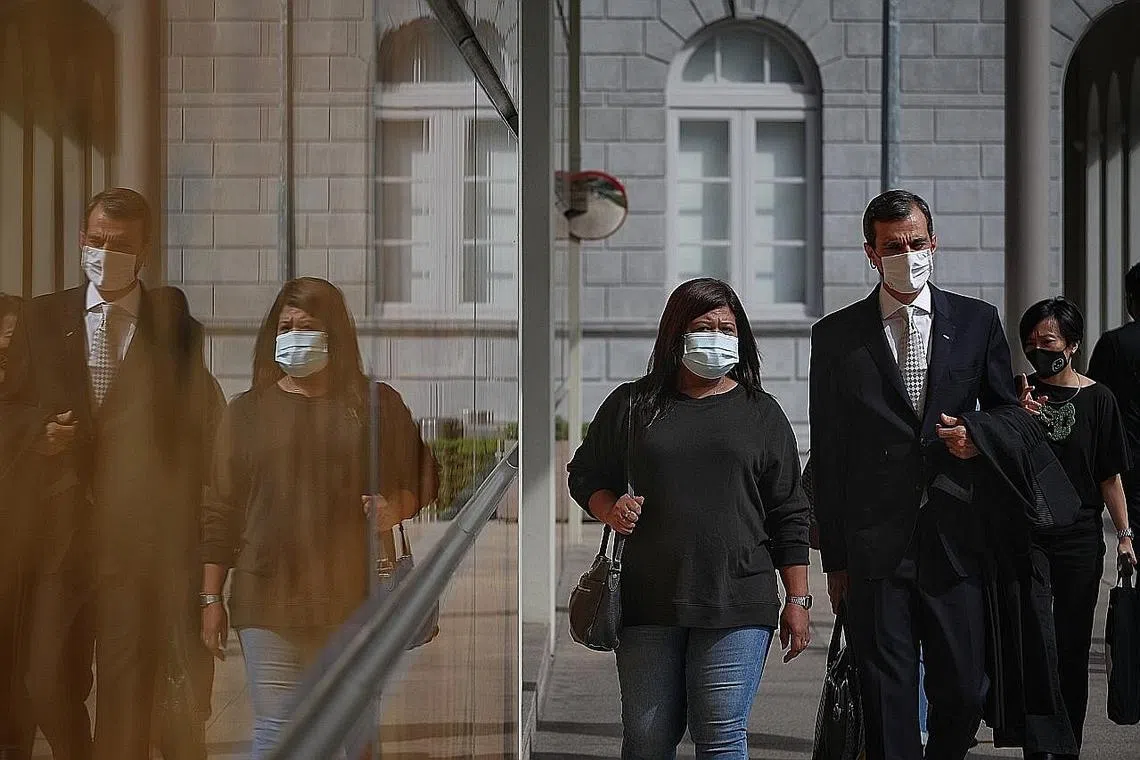 GAGAL BUKTIKAN PENDAKWAAN 'TANPA MERIT ATAU BERTUJUAN MENGGANGGU': Cik Parti Liyani dan peguamnya Anil Balchandani di Mahkamah Tinggi Oktober tahun lalu. Cik Parti gagal membuktikan pendakwaan terhadapnya dilakukan "tanpa merit atau bertujuan mengganggu". - Foto fail