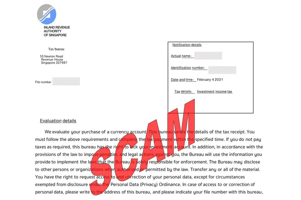 TERDAPAT beberapa laporan bulan ini mengenai surat mencurigakan yang kononnya dihantar Penguasa Hasil Mahsul Singapura (Iras) yang sedang diedarkan dalam kalangan individu yang telah melabur dalam sebuah wadah mata wang kripto.