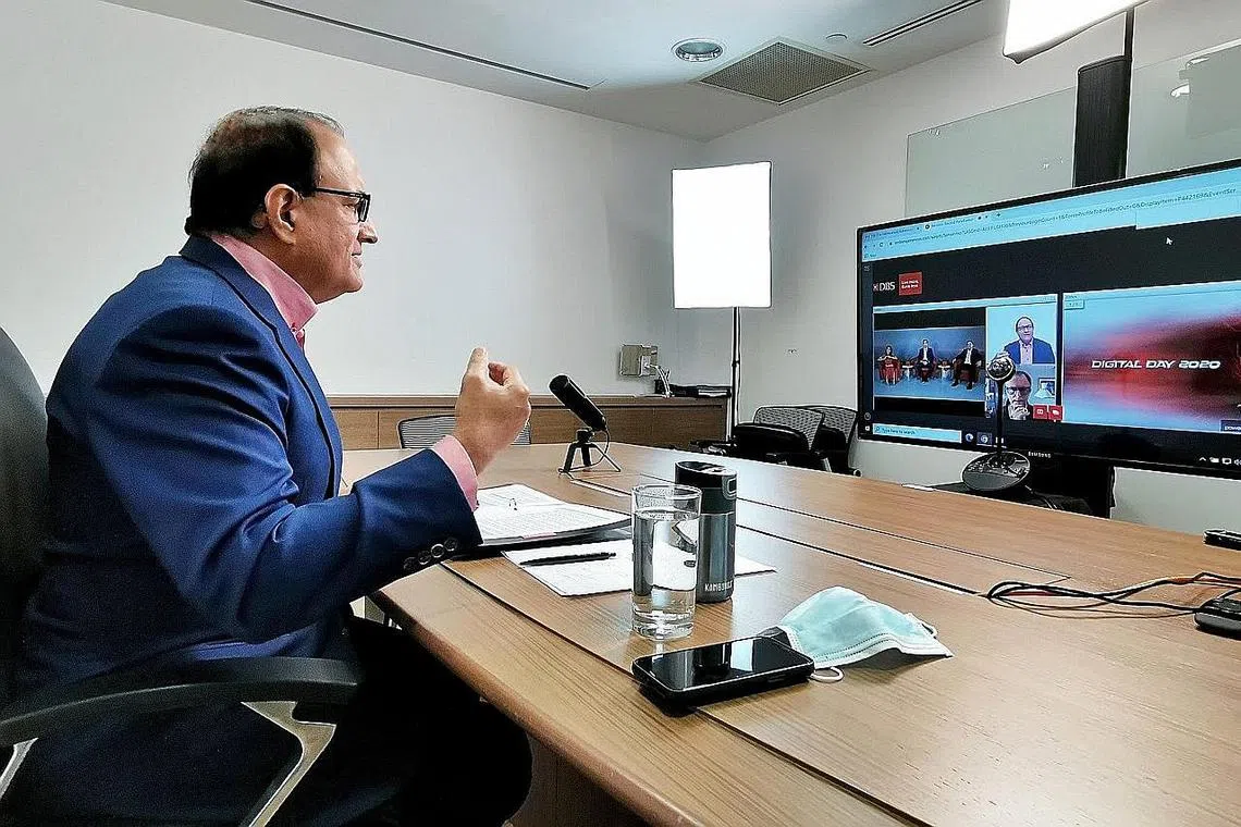 MUNCUL LEBIH KUKUH: Berucap di acara maya Hari Digital DBS semalam, Encik Iswaran berkata Singapura perlu terus berhubung secara global, berinovasi dan menjalani pendigitalan, serta memburu pertumbuhan inklusif untuk muncul lebih kukuh daripada krisis Covid-19. - Foto MCI -