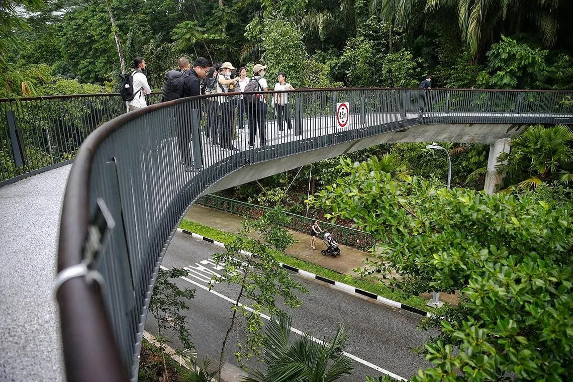 PENGUNJUNG kini boleh mendapati sebuah jambatan baru di Kebun Bunga Singapura yang menghubungkan kawasan Learning Forest dan kawasan tambahan Gallop, yang sebelum ini terpisah dengan Tyersall Avenue.