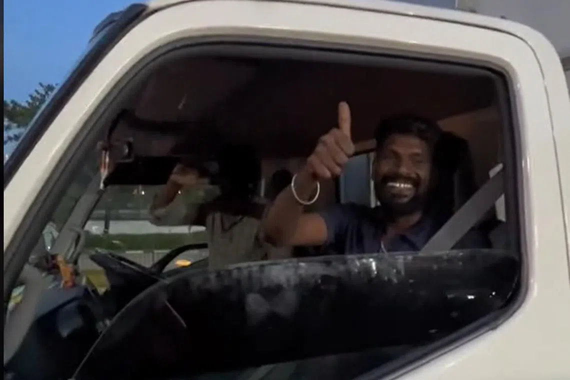 Namun sekitar 10 minit beliau menolak motosikalnya, dua pekerja migran, yang menurutnya sedang dalam perjalanan ke Little India, berhenti untuk memberi bantuan.