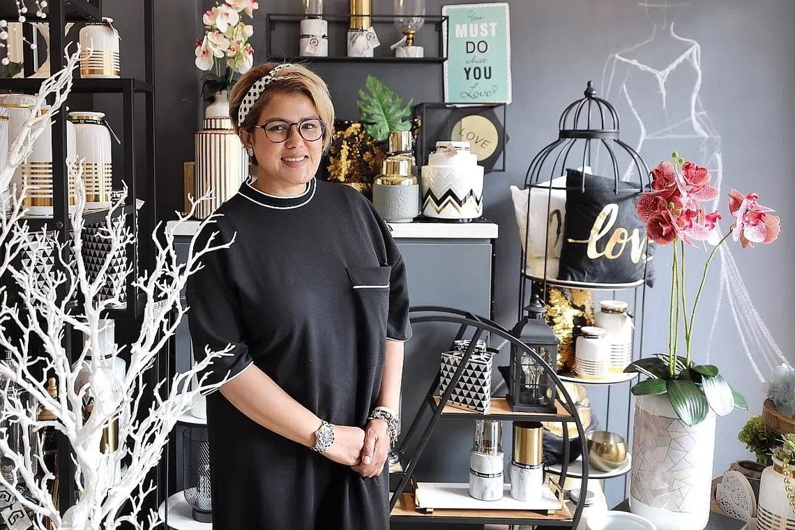 Kedai tiga tingkat di 148 Arab Street itu bukan sahaja menampilkan koleksi busana pengantinnya tetapi juga pelbagai barangan di bawah jenama perhiasan rumahnya, PropUpStore.