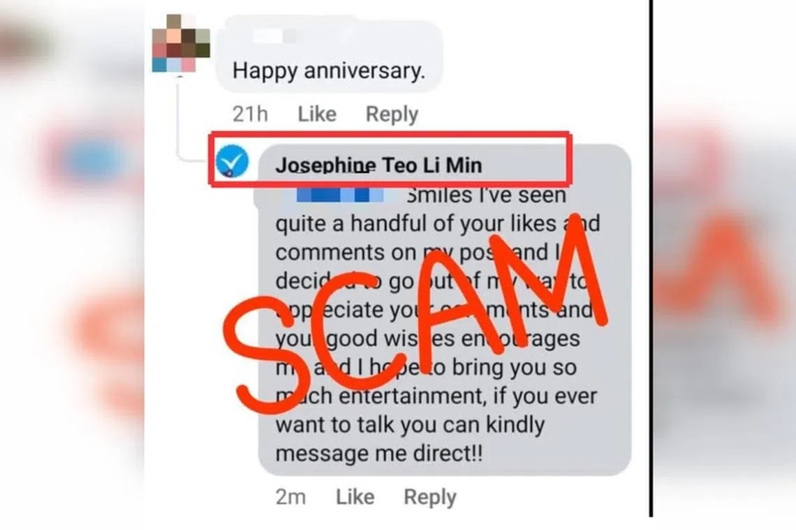 Menteri Penerangan dan Pembangunan Digital, Cik Josephine Teo, pada 19 Januari memberi amaran kepada orang ramai mengenai profil Facebook palsu yang menyamar sebagai dirinya.