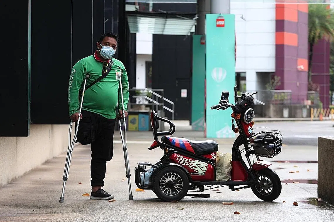 PENDUDUK kawasan perumahan Clementi, mungkin pernah melihat seorang lelaki berkaki kudung mencari rezeki menghantar makanan dengan menggunakan kerusi roda bermotornya.