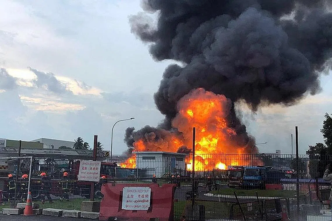 SATU kebakaran besar berlaku di Jurong semalam dengan beberapa letupan kedengaran.