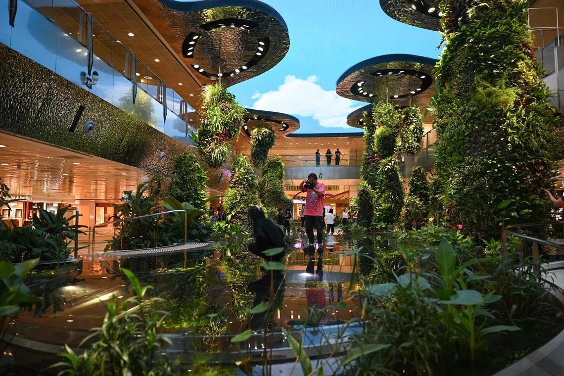 DIILHAM ALAM SEMULA JADI: Sebuah taman baru di kawasan transit selepas imigresen yang dipanggil ‘Dreamscape’ menggabungkan penggunaan kandungan digital dan pemeliharaan tumbuhan dan ikan.