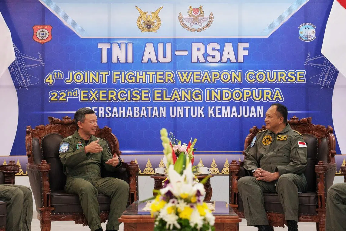Panglima Tentera Udara RSAF, Mejar Jeneral (MG) Kelvin Khong dan Ketua Staf TNI AU Ketua Marsyal Udara (ACM) Fadjar Prasetyo, hadir pada acara penutup Latihan Elang Indopura itu di Pangkalan Tentera Udara Roesmin Nurjadin di Pekanbaru, Indonesia.