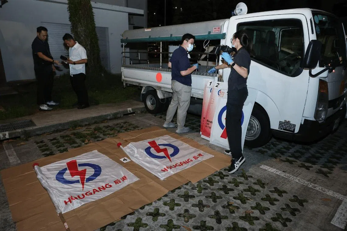 Dia dikatakan telah mematahkan tiang bendera dan menanggalkan poster kempen, yang difahamkan milik Parti Tindakan Rakyat (PAP), lapor The Straits Times (ST).