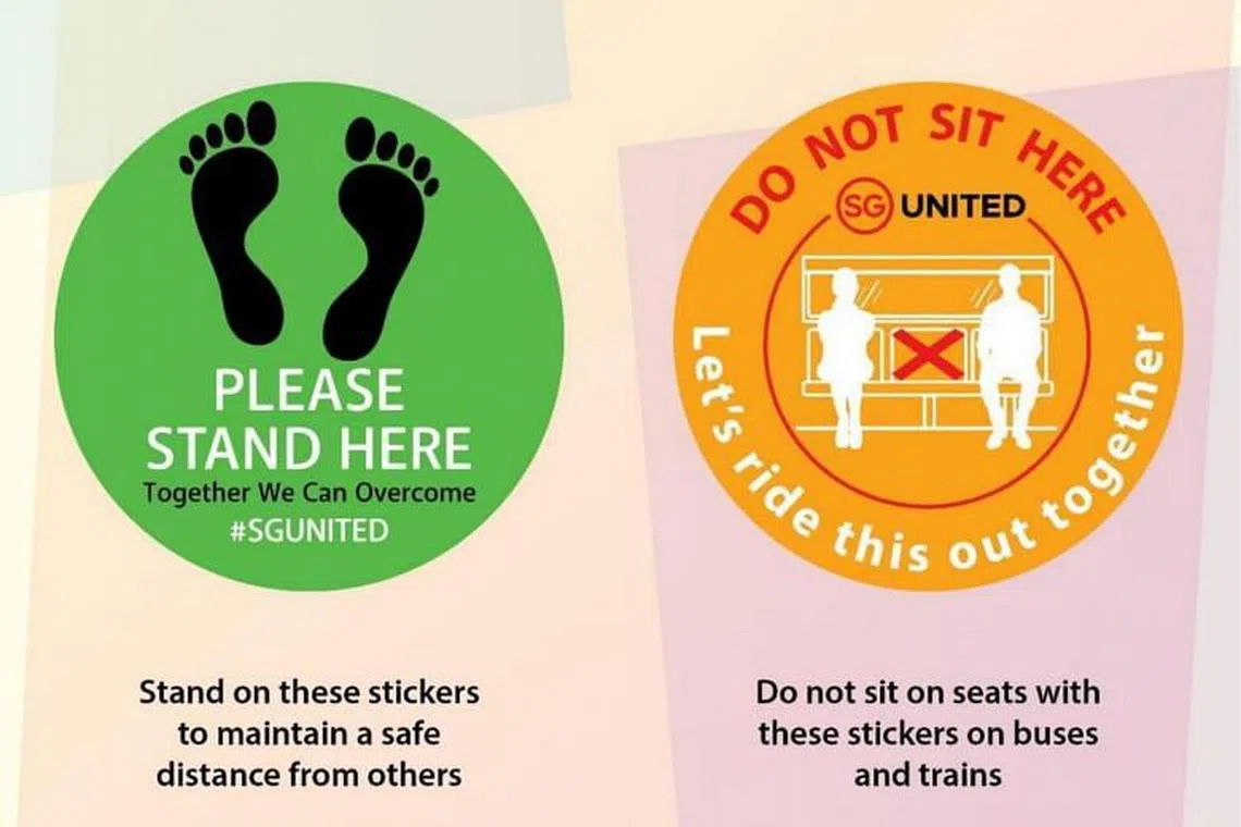 SEMUA kereta api, stesen kereta api, bas, perhentian bas dan pusat tukaran bas akan ditandai dengan pelekat 'jarak selamat', umum Penguasa Pengangkutan Darat (LTA) hari ini.