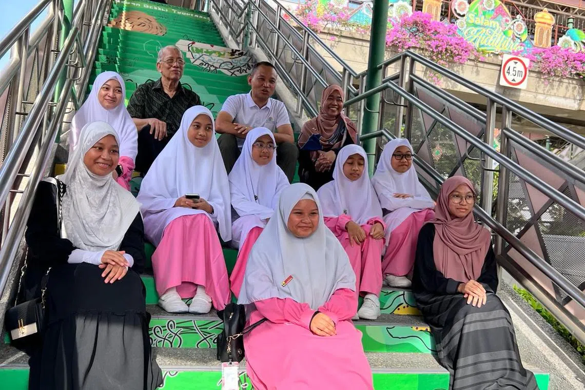 Kededua pelajar Madrasah Al-Ma’arif Al-Islamiah itu jelas teruja apabila lukisan mereka terpilih untuk dijadikan hiasan di jejatas berdekatan di pasar Haig Road, hasil satu inisiatif Jalur Budaya Geylang Serai anjuran Wisma Geylang Serai (WGS).