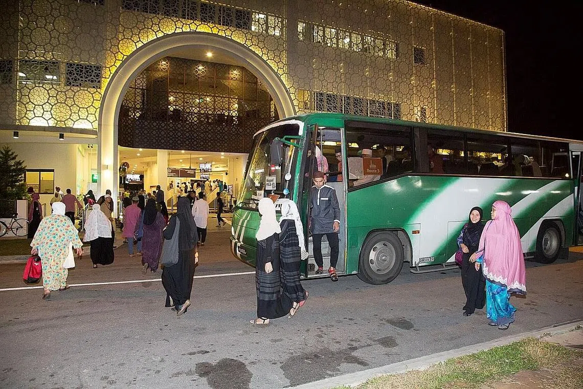 SEKITAR 10 minit sebelum azan isyak berkumandang di Masjid Maarof, jalan raya di luar masjid di Jurong West itu dibanjiri berbondong-bondong jemaah yang turun dari beberapa bas persiaran.