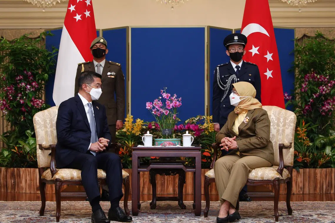 MENTERI Kanan dan Menteri Perdagangan Antarabangsa dan Industri Malaysia, Datuk Seri Mohamed Azmin Ali, bertemu Presiden Halimah Yacob di Istana sempena lawatan kerja beliau ke Singapura.