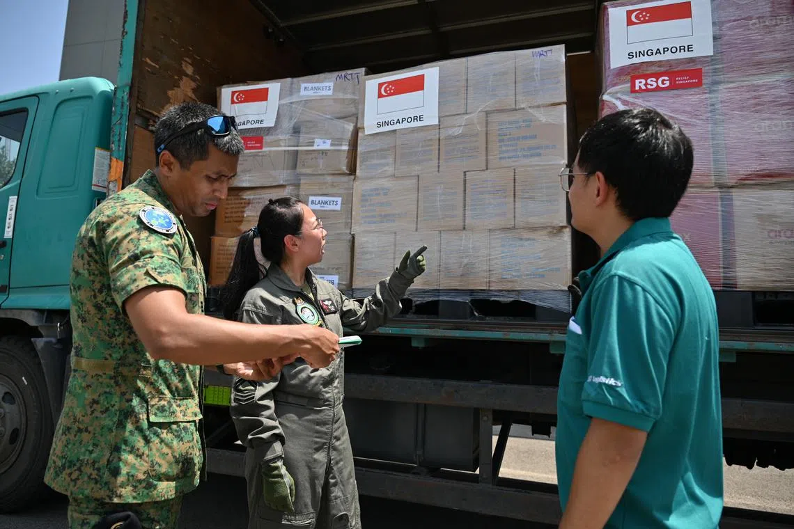 Angkatan Udara Republik Singapura (RSAF) dalam satu penerbangan ke Al-Arish, Mesir, pada 30 November telah menyerahkan peralatan perubatan, farmaseutikal, sanitasi, selimut, saringan air dan makanan daripada agensi pemerintah dan badan bukan pemerintah (NGO) yang termasuk SRC, Mercy Relief dan Relief Singapore.