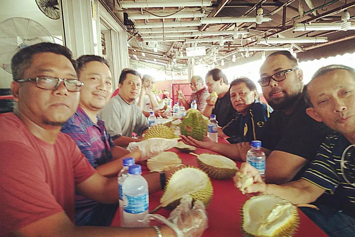 Bagi Encik Abdul Malek Abdullah, hari jadinya yang ke-55, disambut meriah dengan belanja rakan-rakan sekerja makan durian di Geylang, Isnin lalu.