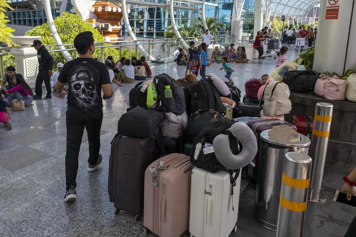 Orang ramai menantikan penerbangan mereka di Lapangan Terbang Ngurah Rai di Bali, Indonesia, pada 18 Jun. Letusan Gunung Lewotobi Laki-Laki di Flores, Nusa Tenggara Timur, Indonesia itu – terletak sekitar 800 kilometer timur Bali – telah menyebabkan sekurang-kurangnya 24 penerbangan menuju ke dan dari pulau Bali dibatalkan. - Foto EPA-EFE