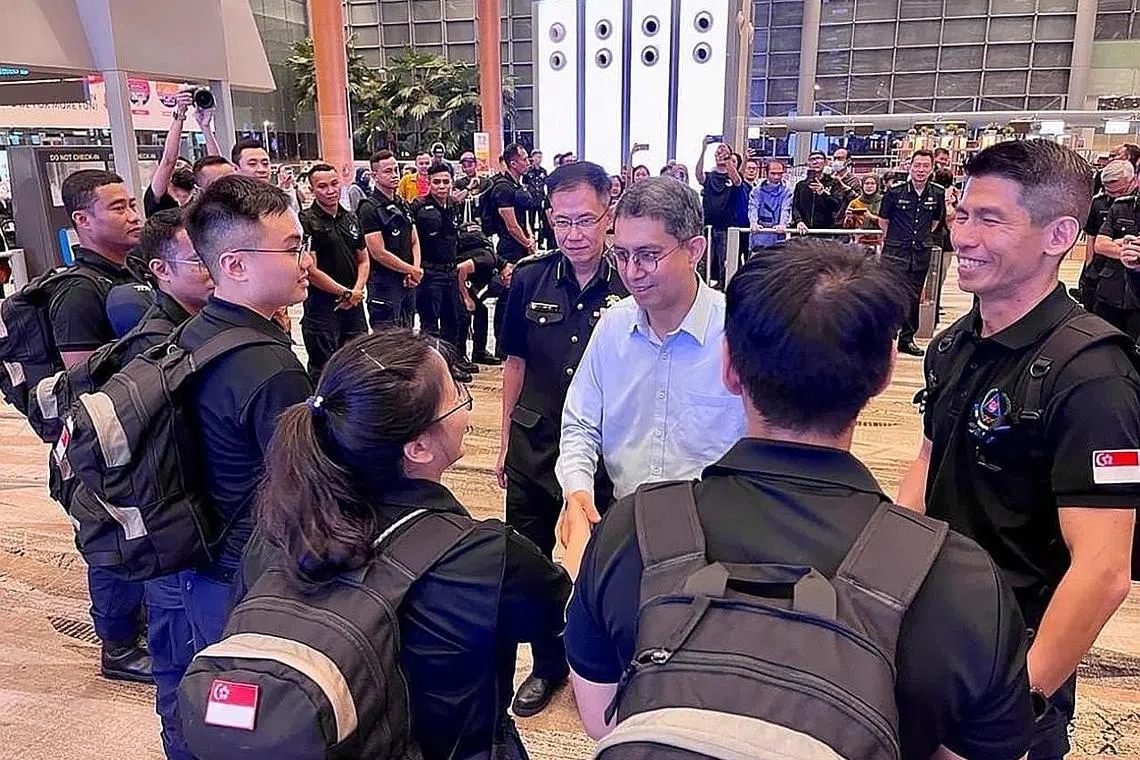 Menteri Negara (Ehwal Dalam Negeri merangkap Pembangunan Negara), Profesor Madya Dr Muhammad Faishal Ibrahim, hadir di Lapangan Terbang Changi semalam untuk mengucapkan selamat bertugas kepada pasukan tersebut.