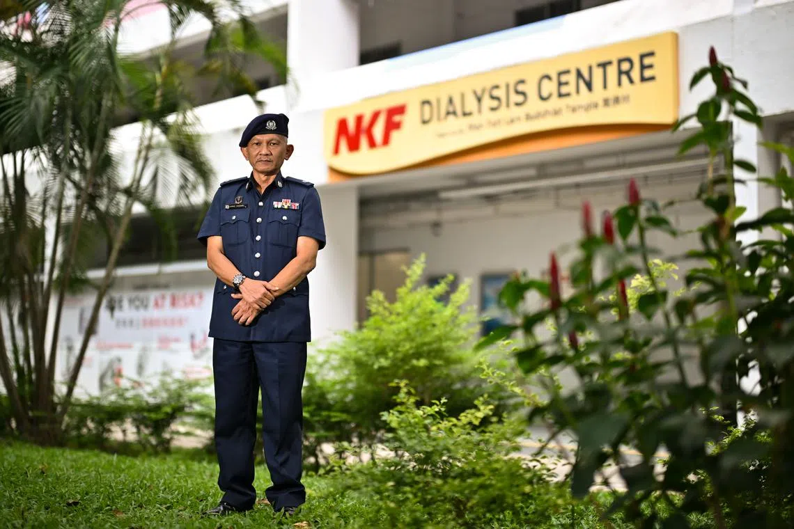 Bersama kakitangan pusat dialisis itu, pegawai tersebut memindahkan pesakit ke gelanggang badminton berdekatan di belakang blok HDB sementara rakan kerjanya menggunakan hos air untuk melawan api.