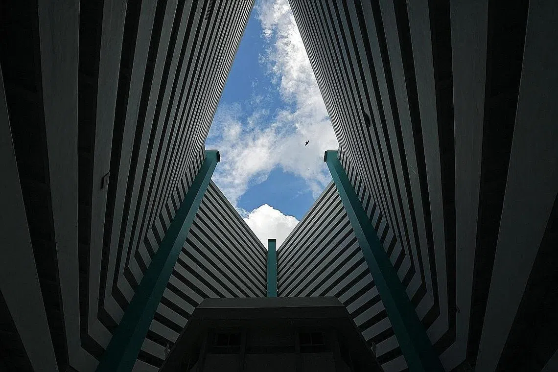 BLOK BERLIAN: Empat blok HDB di Taman Jurong ini akan dijadikan perumahan sementara bagi menempatkan pekerja asing sihat yang bekerja dalam perkhidmatan penting semasa pandemik Covid-19 ini. - Foto fail -