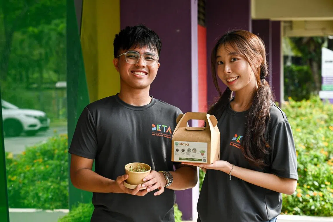 “Kami juga bekerjasama dengan pelajar tahun kedua di Politeknik Ngee Ann, Encik Terence Tam daripada kursus reka bentuk landskap dan hortikultur, yang membantu mempelbagaikan rasa produk sayur ‘mikro’ kami,” ujar Encik Mohammed Arddrean Zikry.