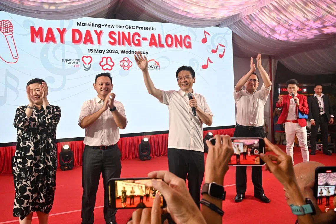Perdana Menteri baru Singapura, Encik Lawrence Wong, menerima sambutan yang meriah apabila beliau hadir di kawasan lapangan bersebelahan stesen MRT Yew Tee pada 15 Mei.