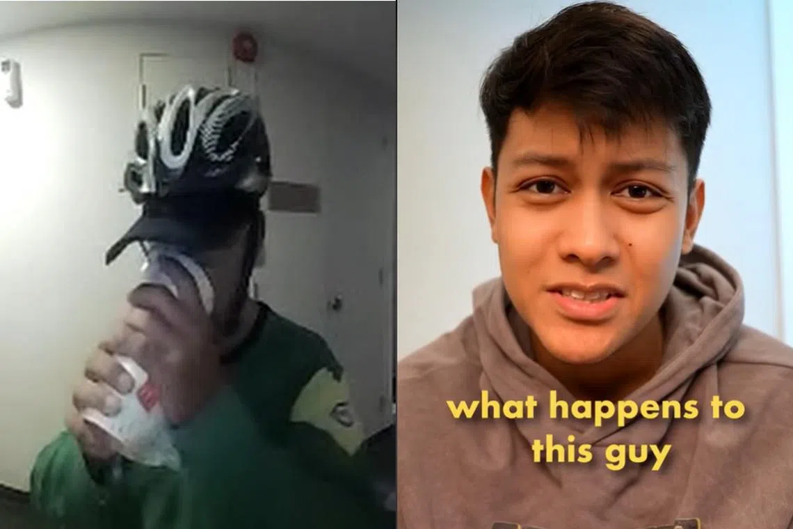 Tidak sedar bahawa terdapat kamera pemantauan di rumah pelanggan, seorang penghantar makanan GrabFood dilihat meminum minuman Milo McDonald’s yang dipesan seorang pelanggan di depan pintu rumahnya.