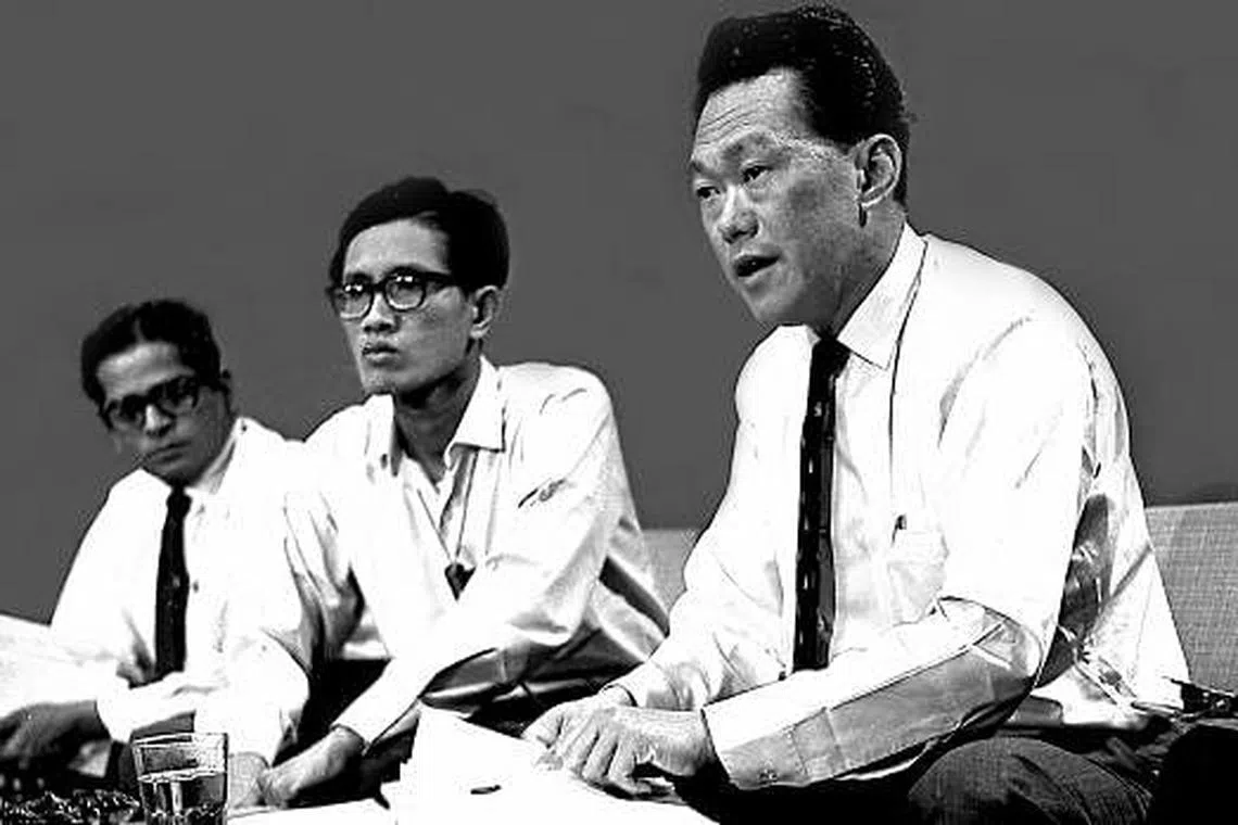 Encik Lee di sidang akhbar mengumumkan perpisahan Singapura dari Malaysia pada 9 Ogos 1965. -