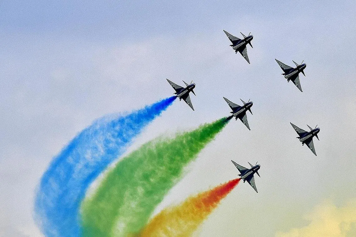 Membuat penampilan pertama di udara dalam pertunjukan itu ialah pesawat tempur ringan Tentera Udara India yang dipanggil Tejas.