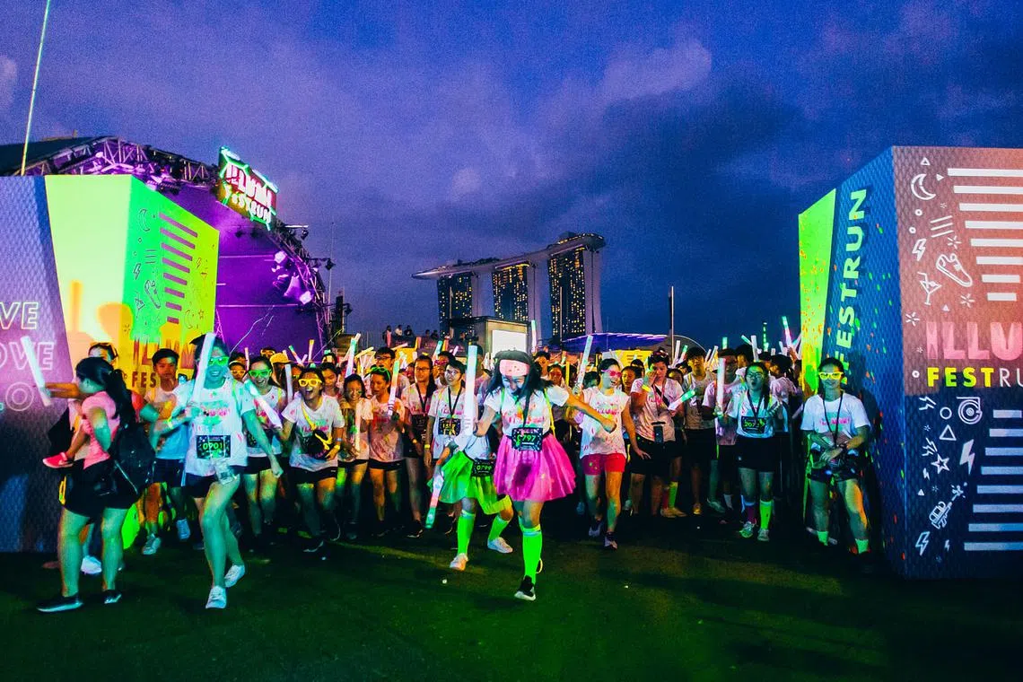 Mereka merupakan peserta acara Illumi Fest Run yang dianjurkan bersama i Light Marina Bay.