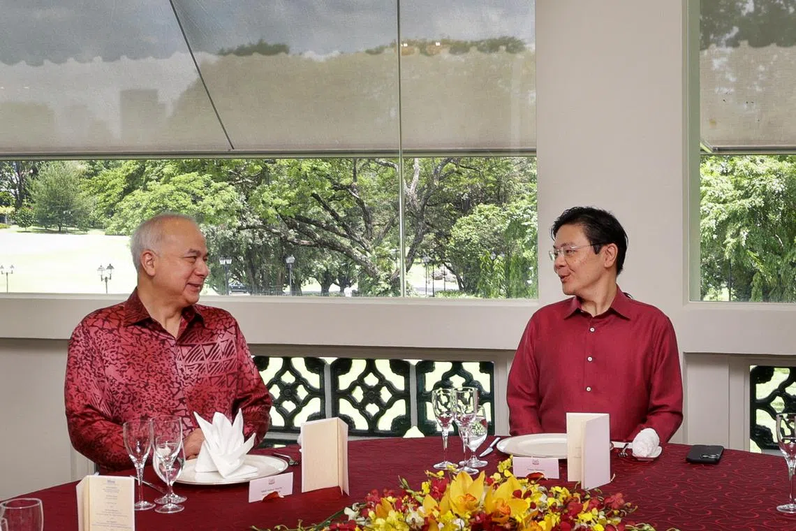 Perbincangan mengenai perkembangan sejagat, masa depan Asean dan hubungan Singapura-Malaysia berjalan lancar di Istana pada 15 Oktober ketika Perdana Menteri, Encik Lawrence Wong, menjadi tuan rumah yang menyambut mesra kedatangan Timbalan Yang Di-Pertuan Agong yang juga Sultan Perak, Sultan Nazrin Muizzuddin Shah.