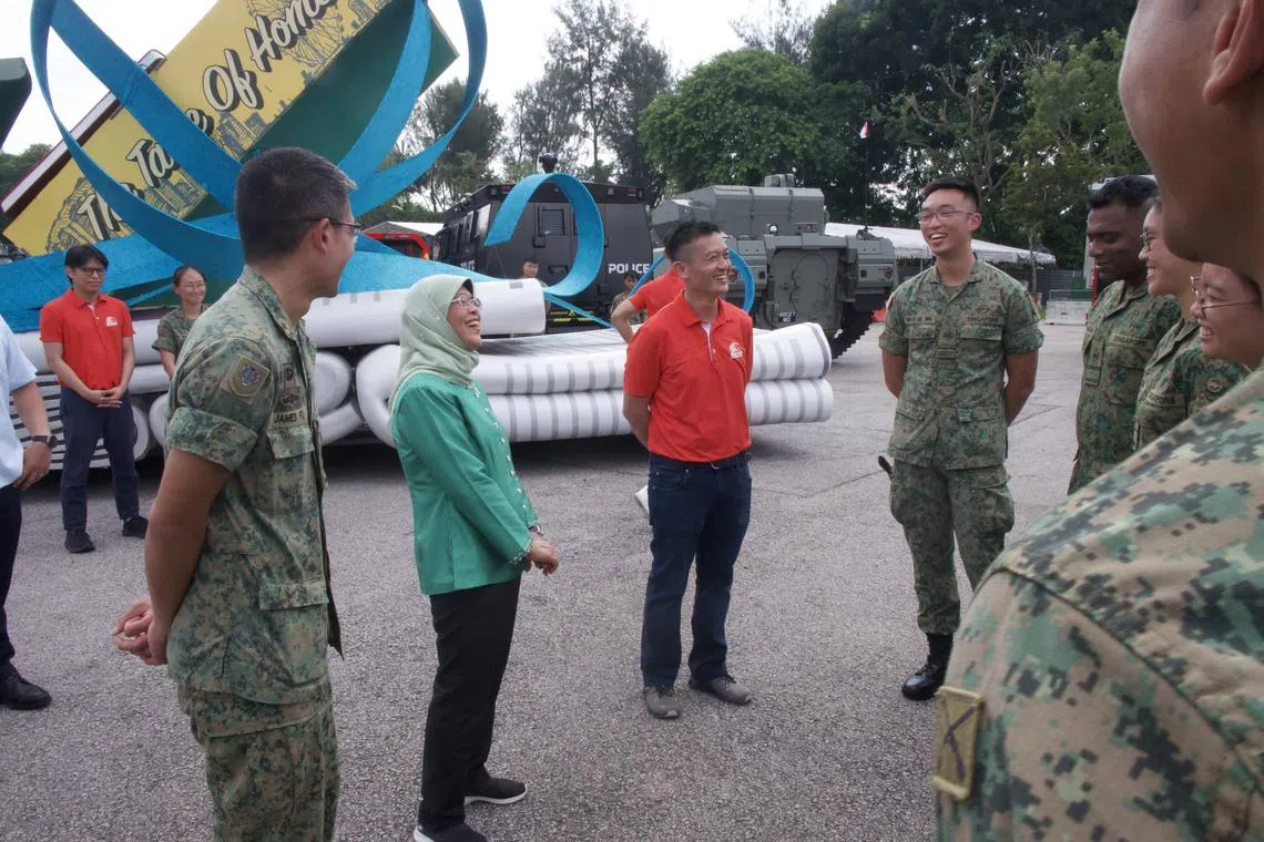 Presiden Halimah Yacob mengunjungi pangkalan peserta Pertahanan Mutlak pada Sabtu pagi dan berinteraksi dengan sekitar 50 peserta.