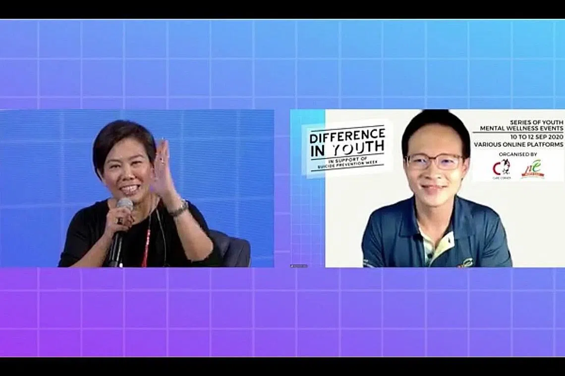 SEBARKAN KESEDARAN KESIHATAN MENTAL: Mayor Daerah CDC North East Desmond Choo (kanan) bersama hos Irene Ang (kiri) dalam sesi Facebook Live program 'Difference in YOUth' kelmarin. - Foto CDC NORTH EAST -