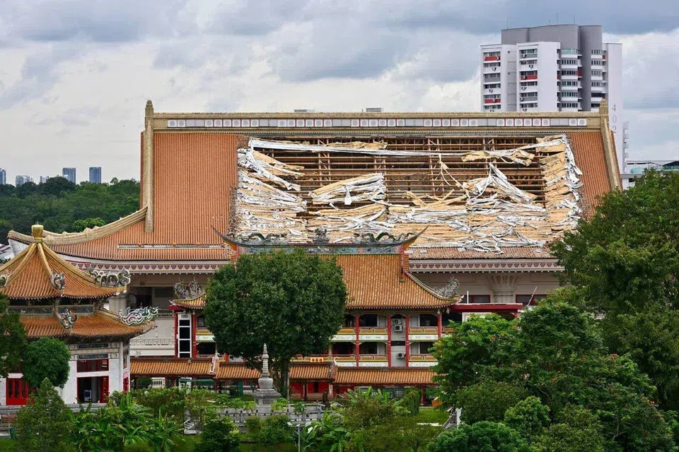 Sebagai maklum balas kepada pertanyaan, seorang jurucakap Penguasa Bangunan dan Binaan (BCA) berkata sebahagian jubin bumbung dan rangka sokongan bumbung telah runtuh di Dewan Peringatan Venerable Hong Choon.