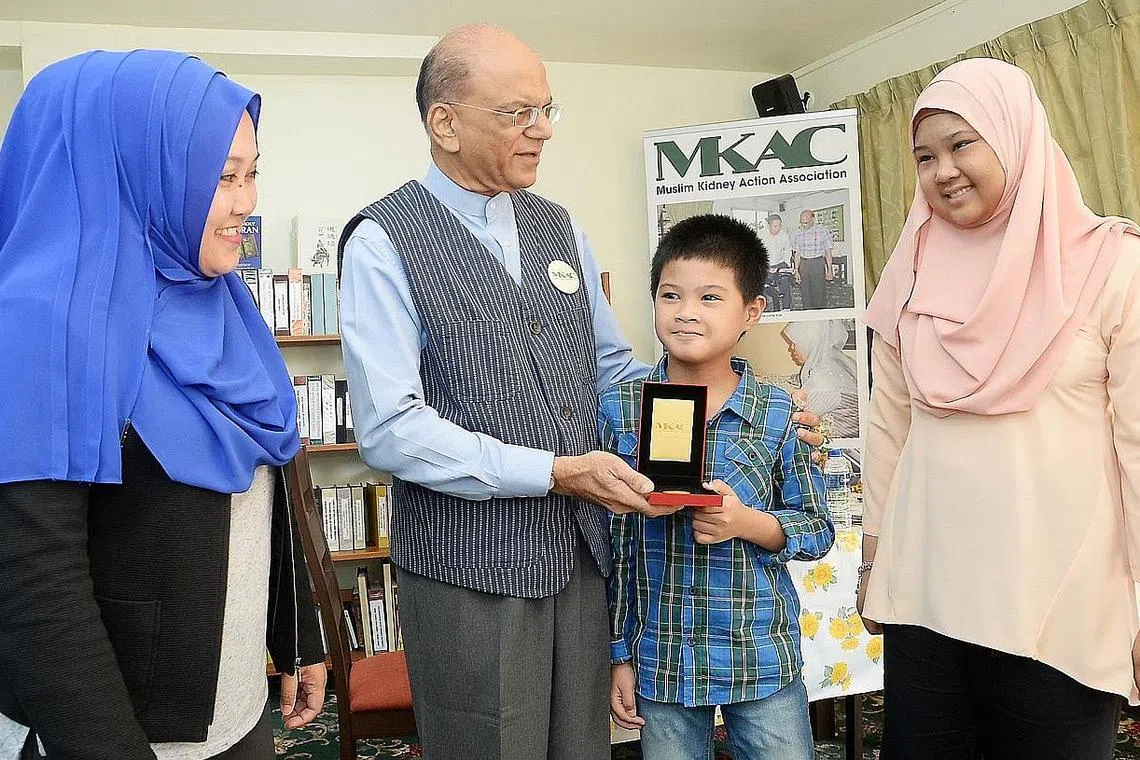 ADIK HERO, KAKAK BERANI: Presiden MKAC, Encik Ameerali Abdeali, bertemu Muhd Sufyan Shapiee, yang telah mendermakan sel tunjangnya kepada kakaknya, Cik Siti Fatimah, yang menghidap penyakit barah darah disebut 'chronic myeloid leukemia'. Di kiri ialah ibu dua beradik ini, Cik Idzalailah Ahmad. - Foto JOHARI RAHMAT -